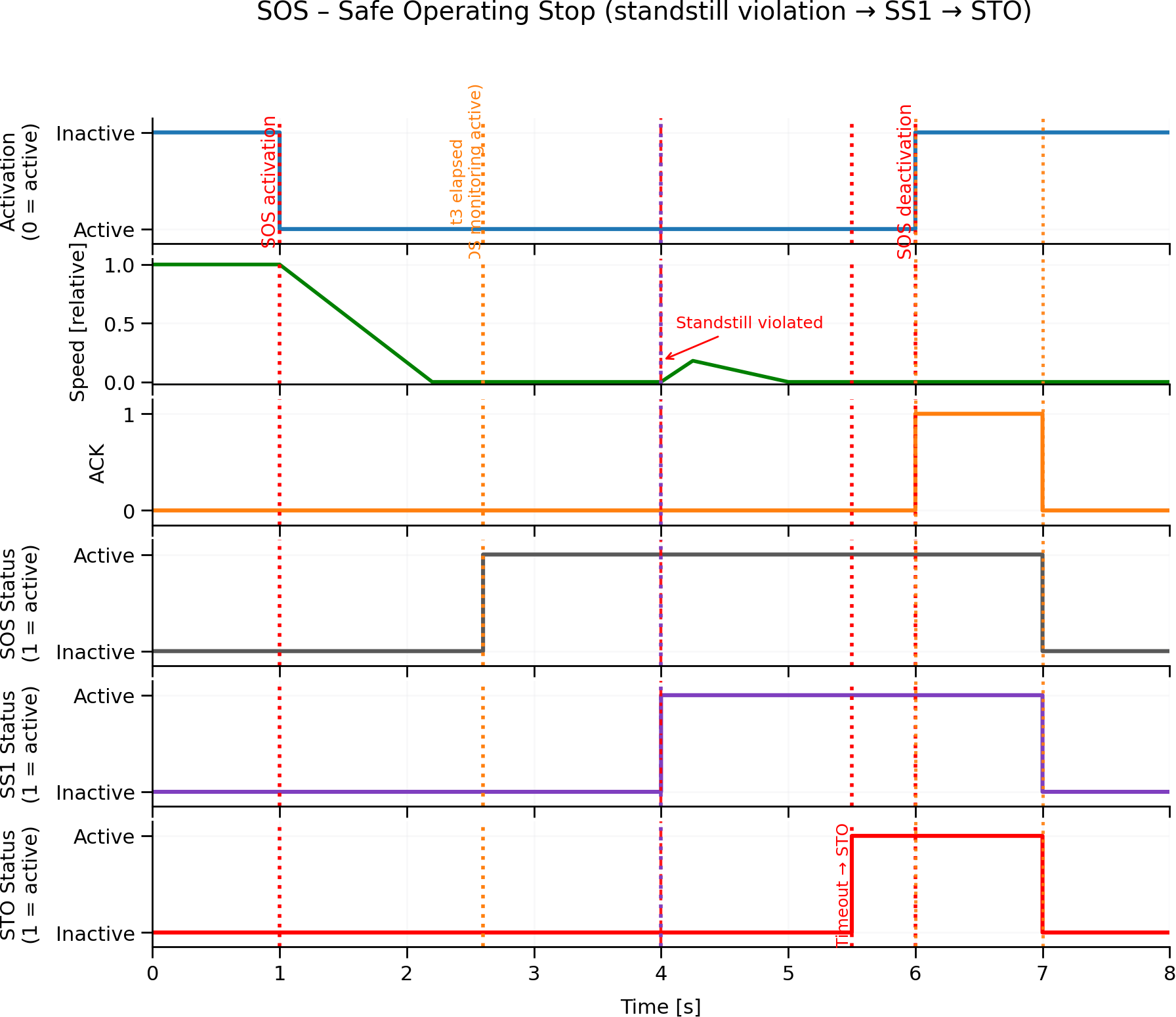 - The reaction sequence is defined by the safety parameters and can be either SS1 or STO.