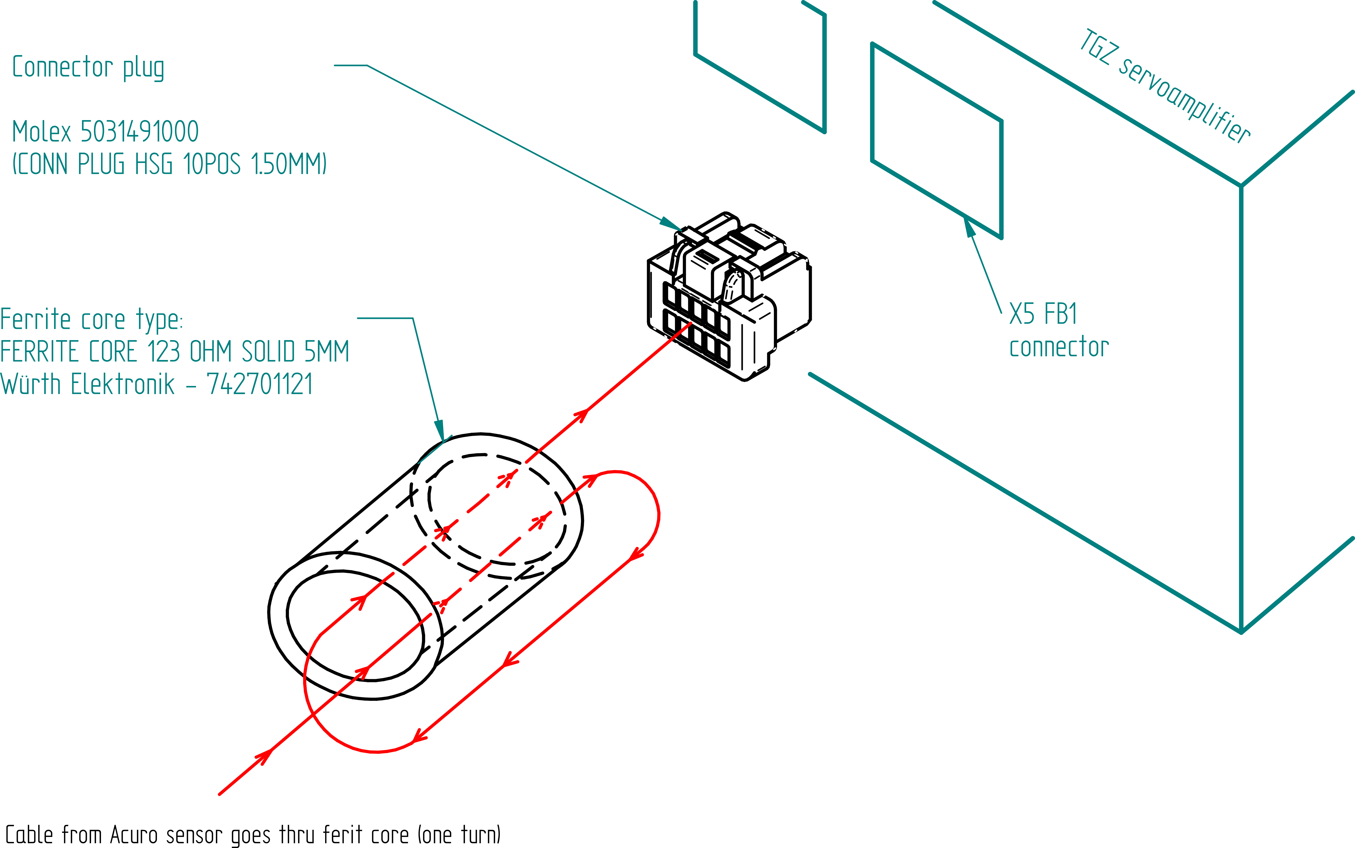 For this sensor, it is recommended to use an additional data communication filter with a ferrite ring: